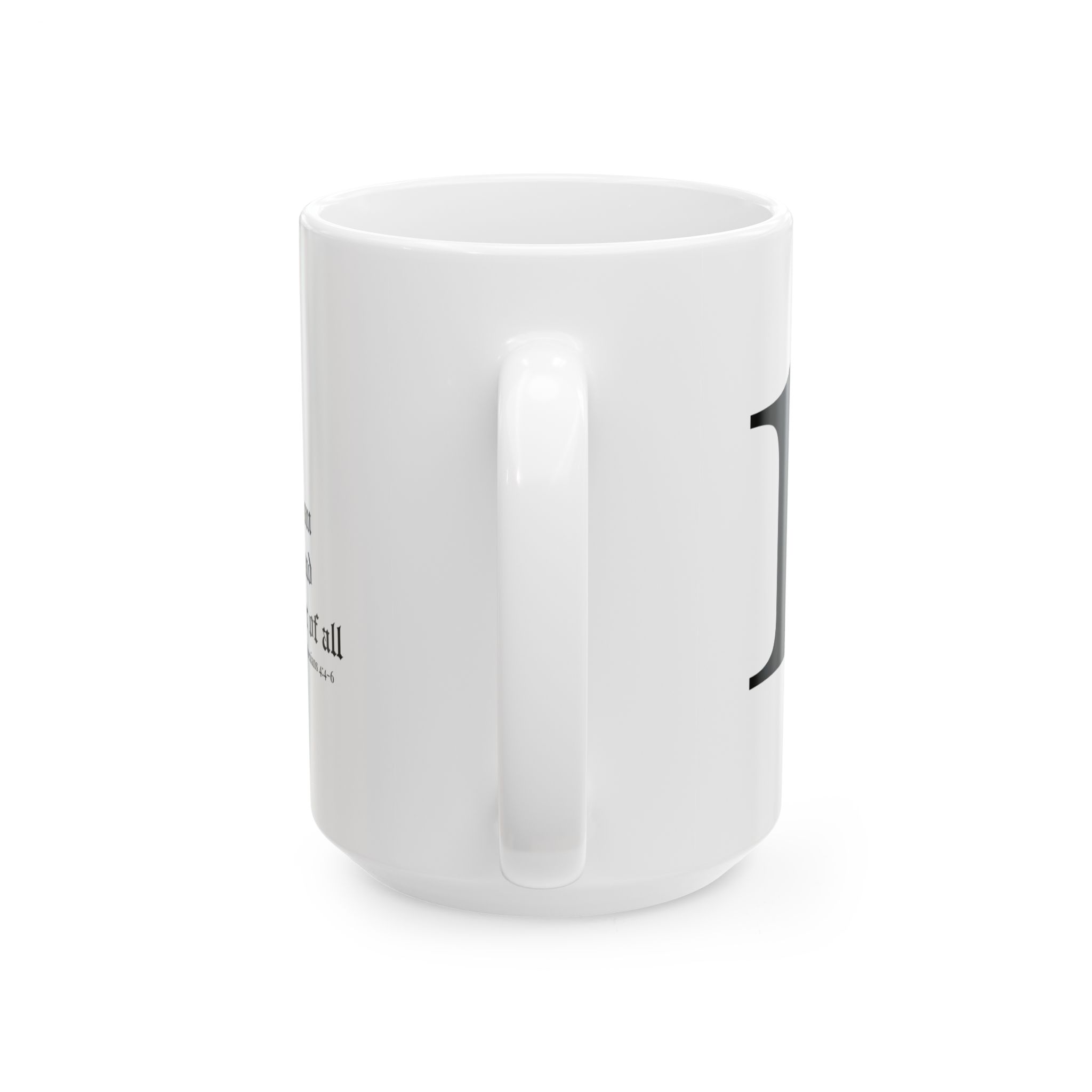 Christian inspirational mug, faith based gift in two sizes. Scripture design on both sides. Ceramic tea, hot chocolate, or coffee mug.